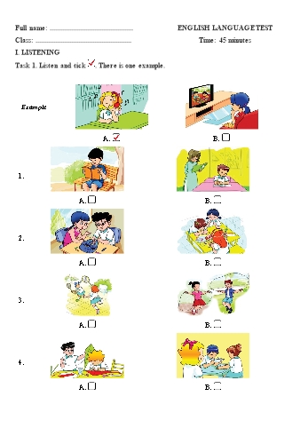 Đề thi học kì I môn Tiếng Anh Lớp 4 - Đề số 1 (Có đáp án)